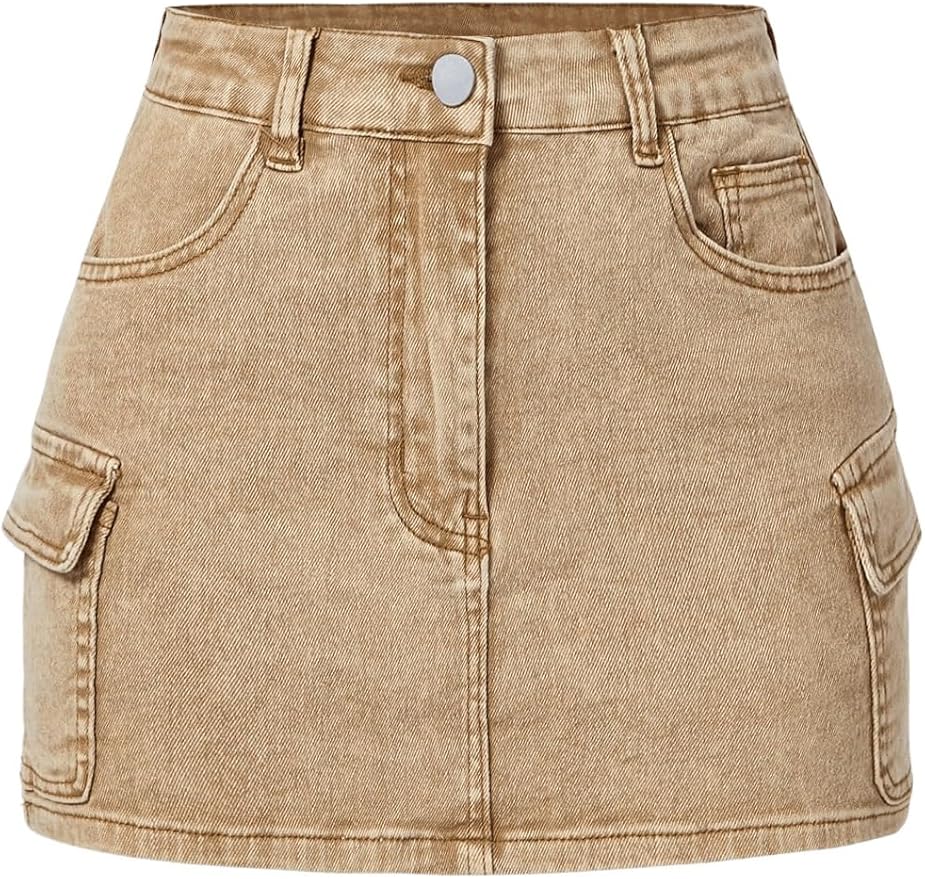 Womens Cargo Skirt Y2k Low Waist Button Bodycon Denim Mini Skirt with Flap Pockets