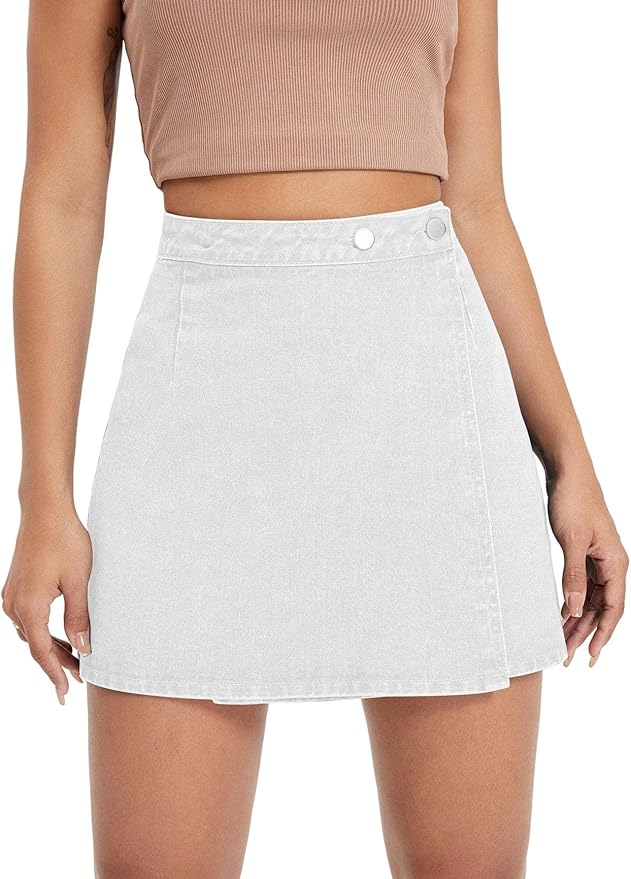 Skorts Skirts for Women Denim Mini Skirt Side Slit with High Waisted Jean Shorts Stretchy